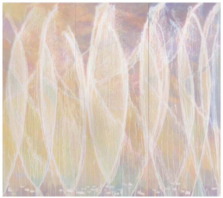 박소현, 부유하는 물덩이 #95 — 따뜻하게 얼리기, 2023, 순지에 채색, 200×275cm