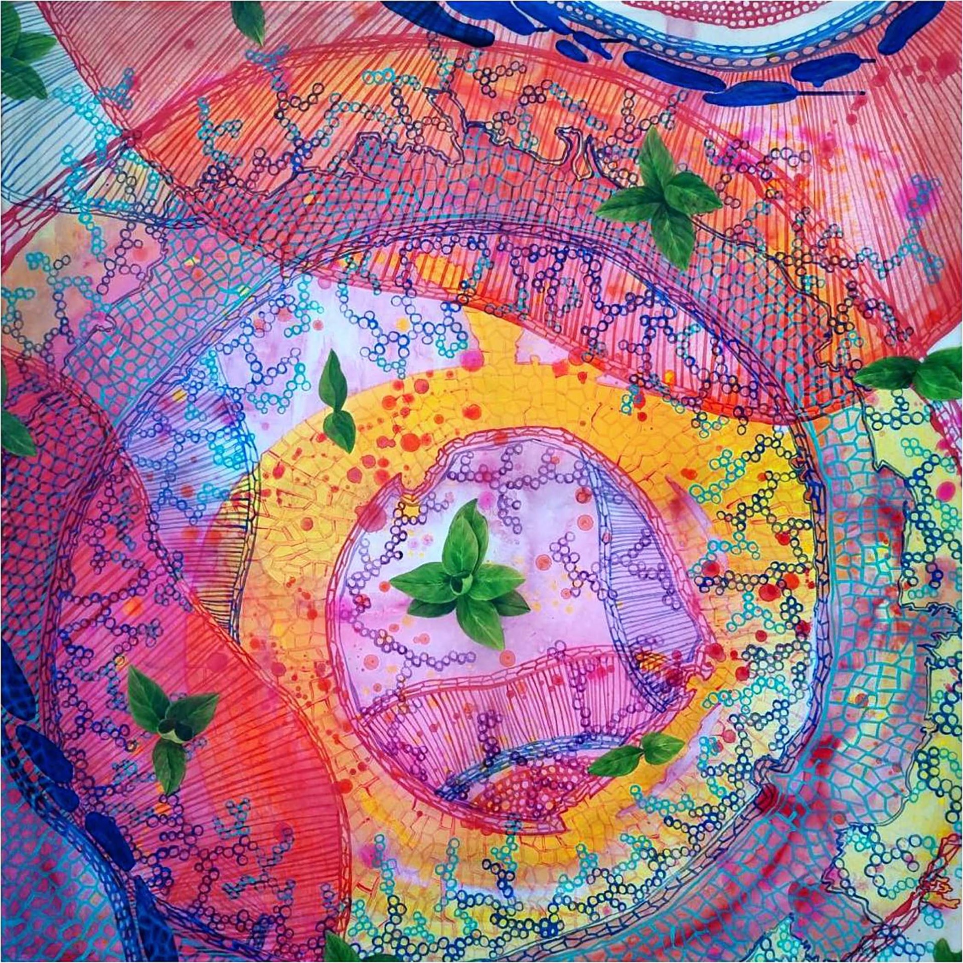 조미예, 무용한 정원, 2023, 비단에 아크릴, 91×91cm