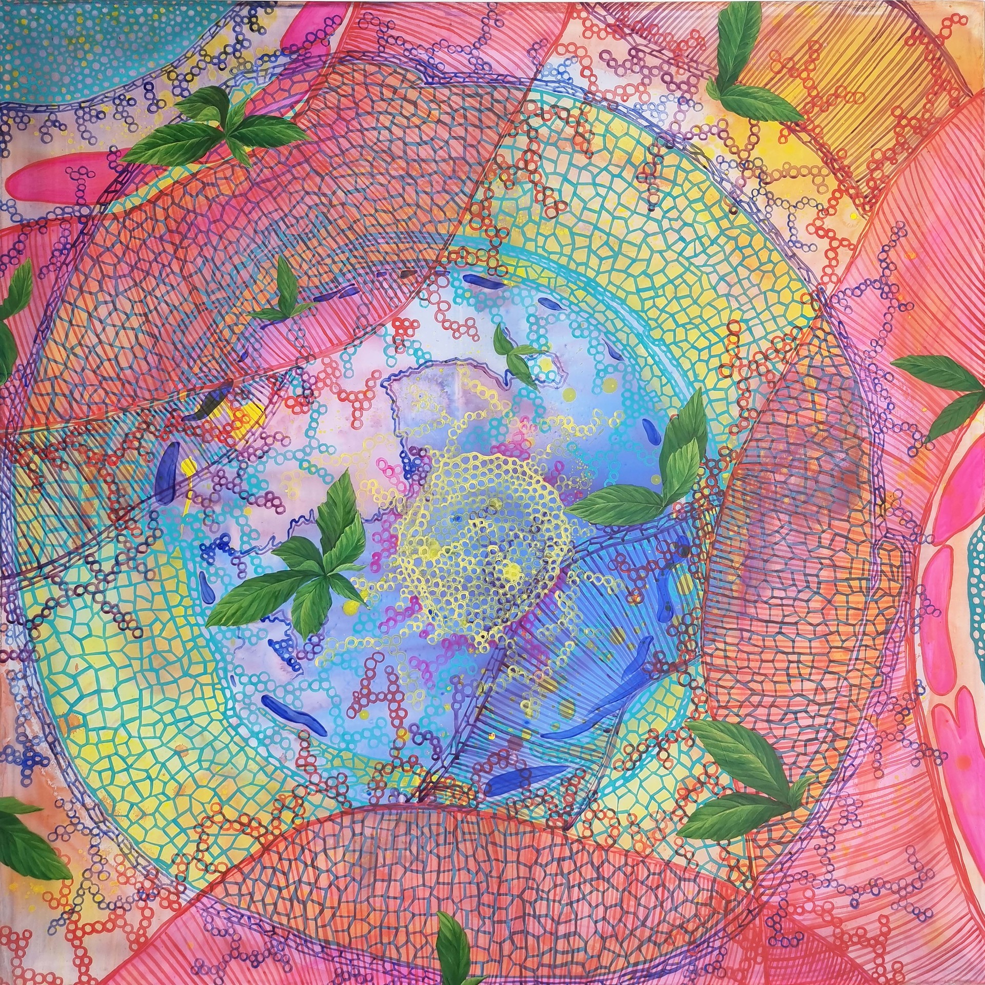 조미예, 무용한 정원, 2023, 비단에 아크릴, 91×91cm